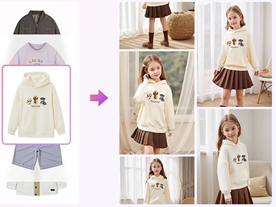 通过上传模特照片和衣服图片,一句话描述,让模特更换服装,一键生成试衣图